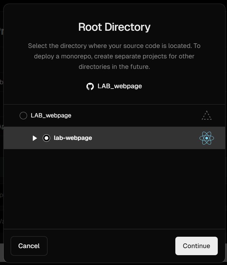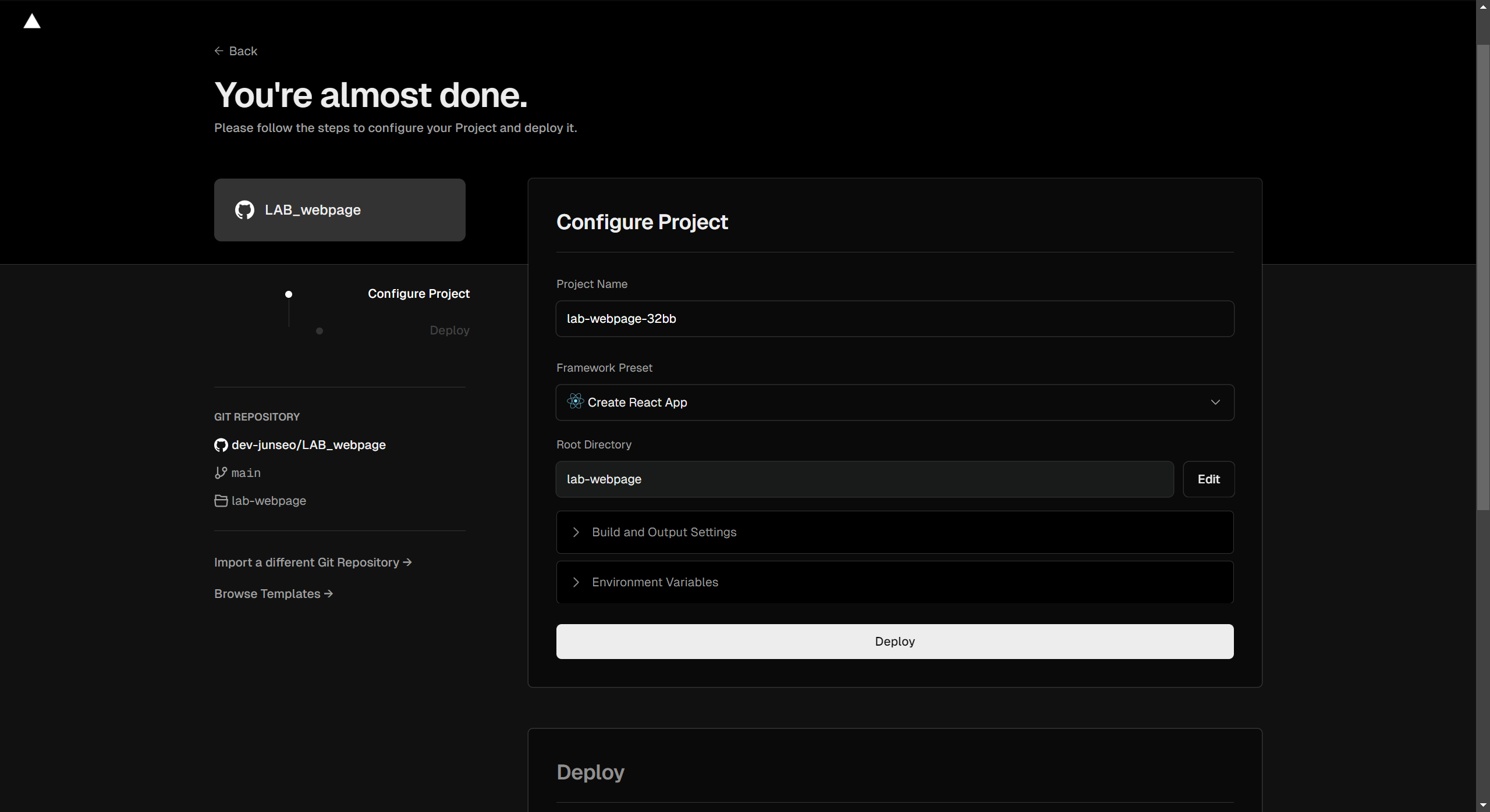 Framework Preset : 프로젝트를 빌드, 배포 하는데 사용할 프레임워크/런타임 환경 지정 (아마 자동으로 선택되어진다)