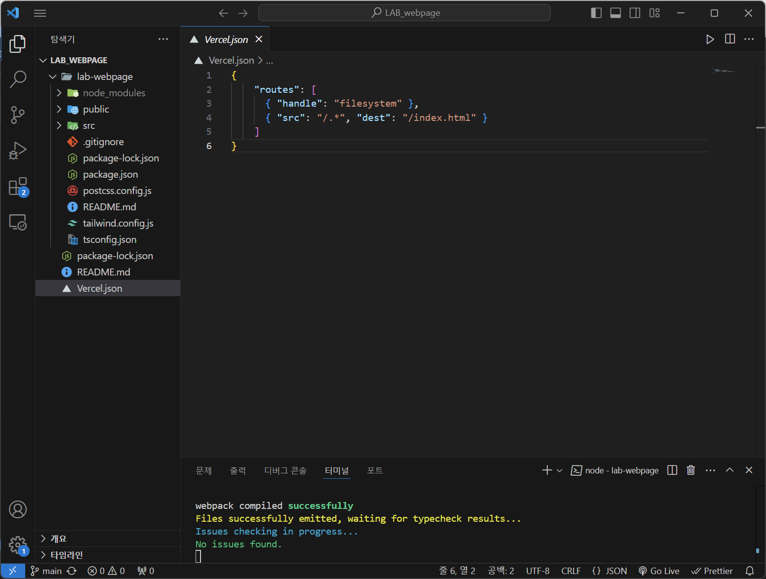 2. 상위폴더에 Vercel.json 파일 생성