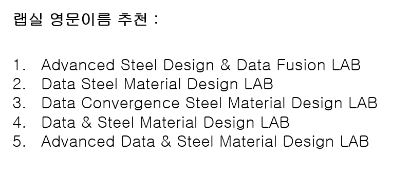 우리 랩실의 한글명은 데이터융합철강재료설계연구실 이다.